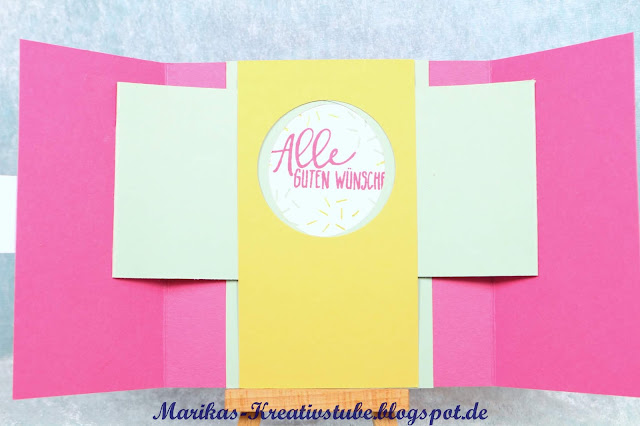 Wenn Ihr die Karte öffnet, wird innen ein Fenster freigegeben, hinter welchem sich der Geburtstagsgruß befindet.
